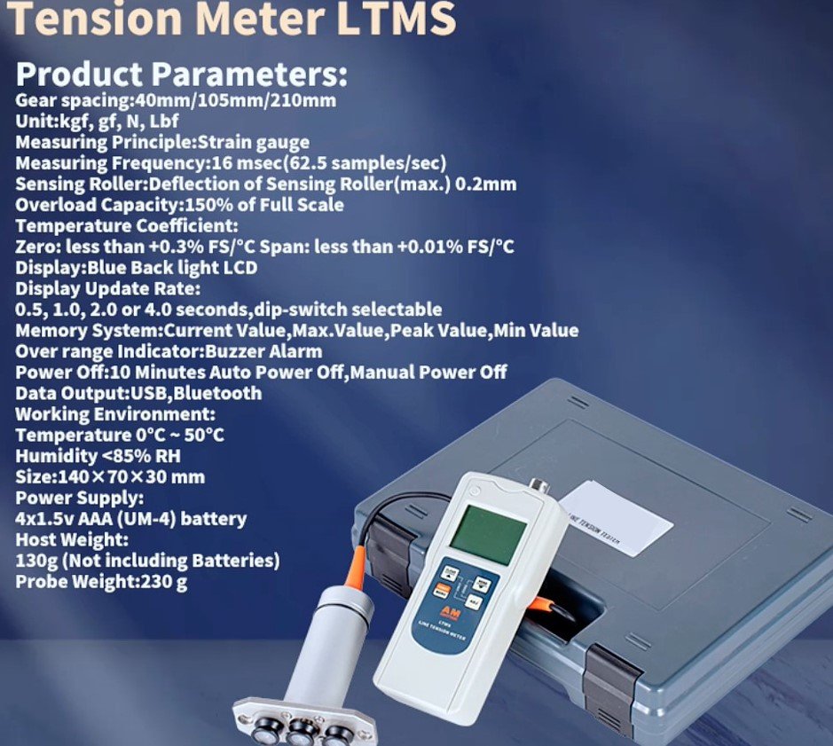 The LTMS Digital Tension Meter is a hand-held device which accurately measures the running as well as static tensions of a wide variety of process materials including yarns, fibers, wires, optical fibers, etc.