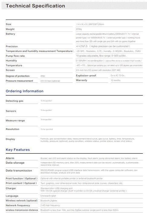 For other gases and the measure ranges that are not listed, please contact us for free quotes and information.