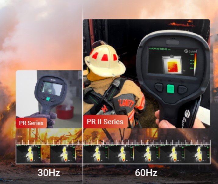 PR II Series features a focus-free design for quick, sharp thermal imaging without manual adjustments. Its 60Hz high frame rate ensures smooth, stable imaging essential for real-time fire scene analysis. The 4.3-inch anti-glare LCD screen allows users to identify targets even in harsh glare or smoke-filled environments, enhancing accuracy.