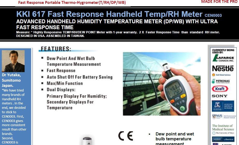 CEN0003-617 Fast Response Handheld Tempeature / Relative Humidity Meter ((T/RH/DP/WB)