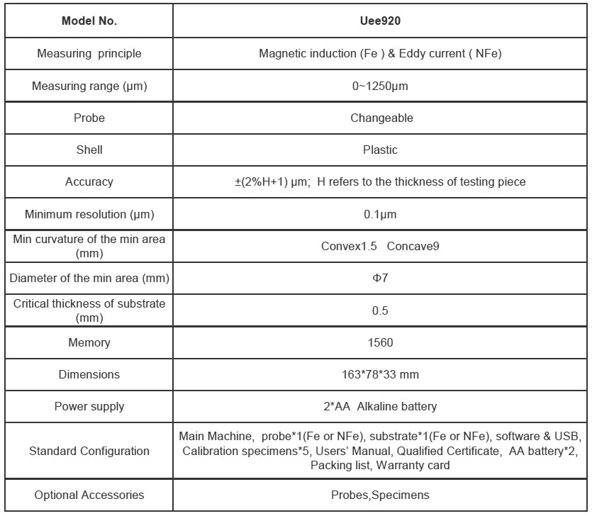 ●Magnetic Induction (Fe): Measuring the thickness of Non-magnetic coating on magnetic metal substrate, such